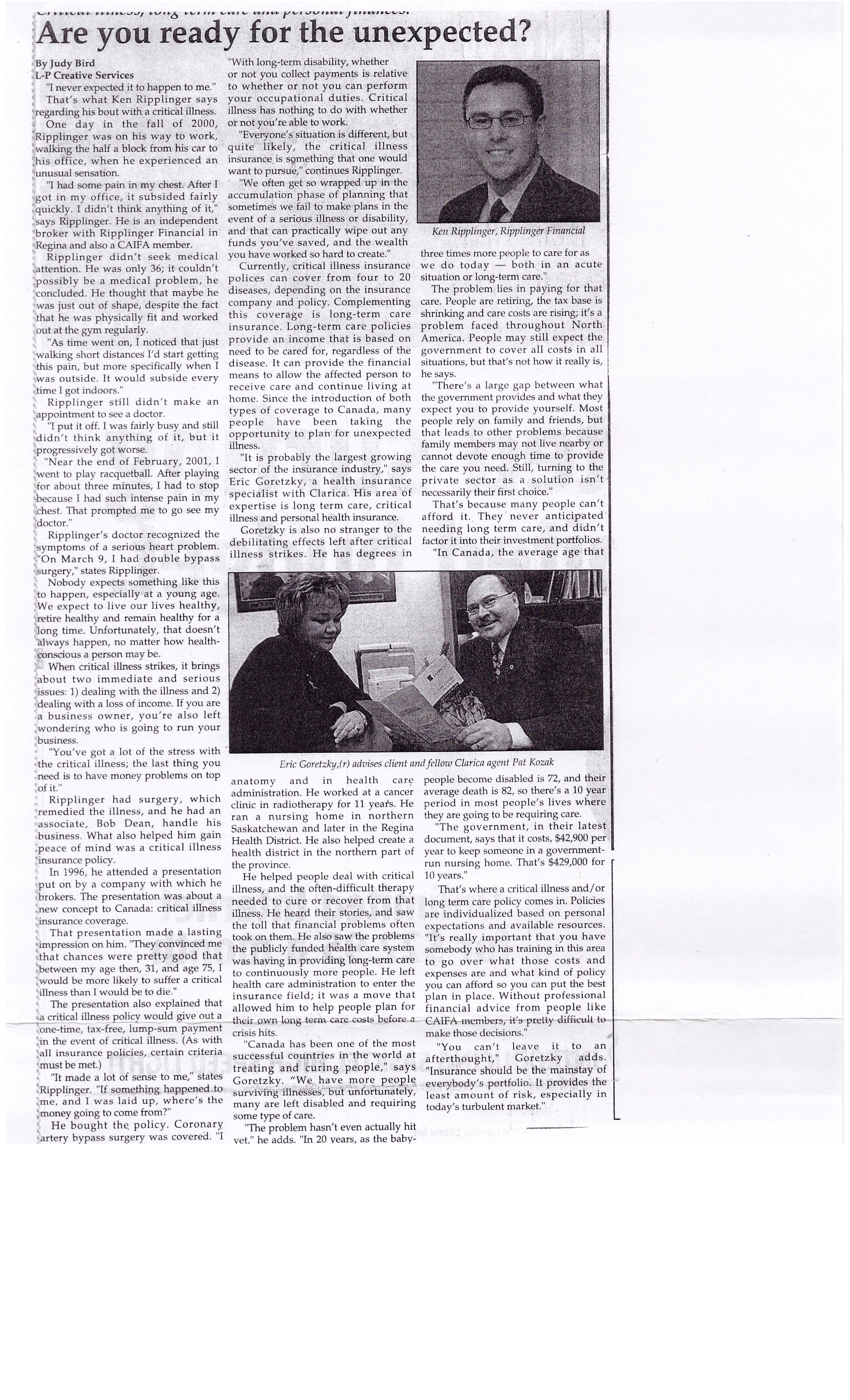 - Why is Critical Illness Insurance important? Read Ken Ripplinger's personal story: